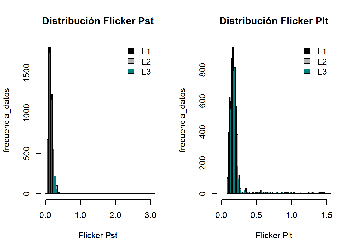El flicker de larga duración (Plt) alcanzó 0.33 durante el 95% del tiempo de medición, por debajo del límite máximo de 0.8. El flicker de corta duración (Pst) alcanzó un valor de 0.27 muy por debajo de límite máximo de 1.0.